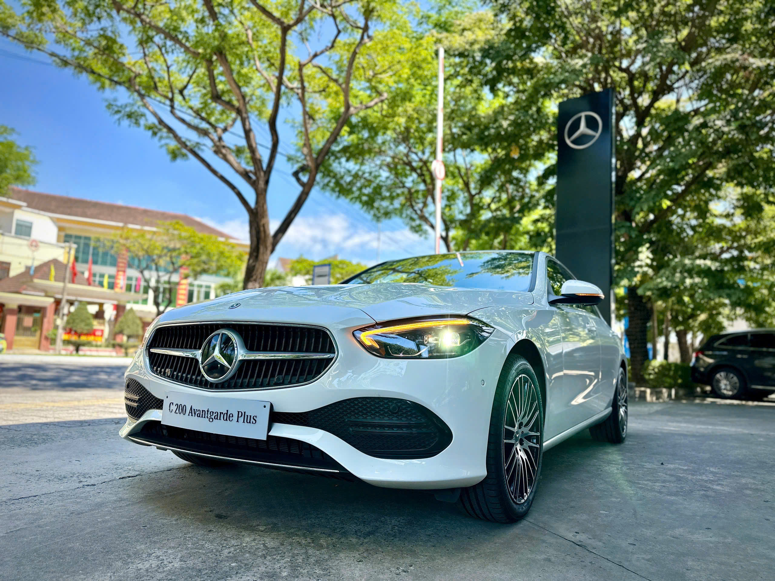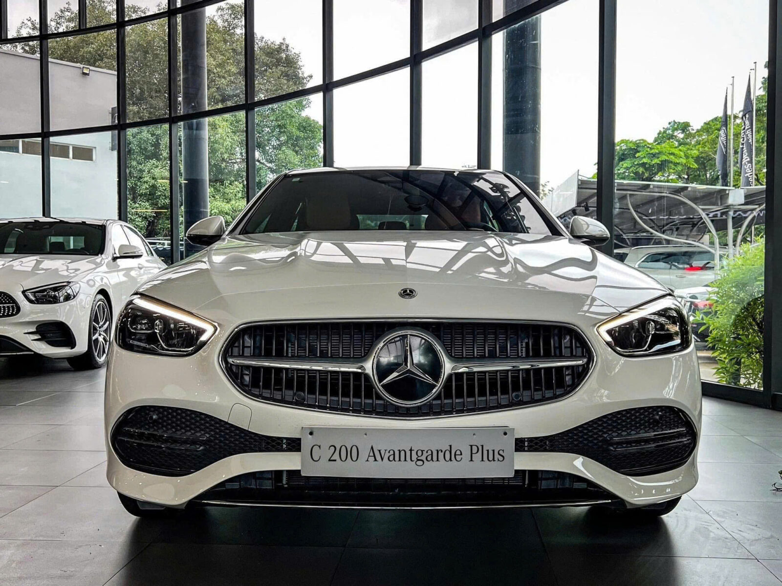 Cụm đèn pha bố trí cân đối 2 bên đầu xe cũng tái thiết kế nhưng đáng tiếc chỉ là dạng full LED chứ chưa có công nghệ Digital Light như trên bản C 300 AMG. Dải đèn ban ngày LED đặt ngay phía trên tạo hình móc câu sắc sảo. Đây cũng là lần đầu tiên Mercedes-Benz C 200 Avantgarde được trang bị đèn chào mừng với hình chiếu logo Mercedes-Benz.